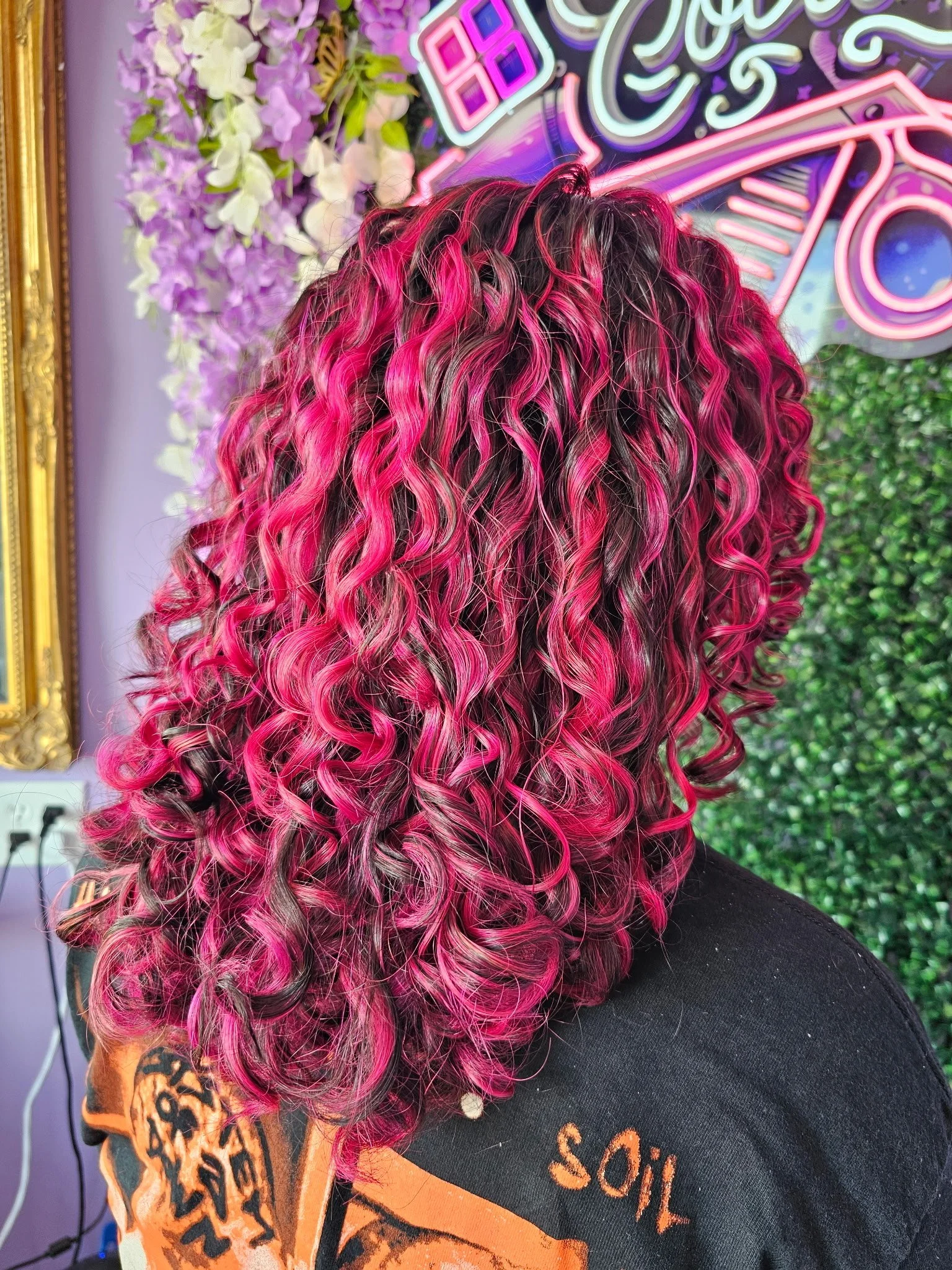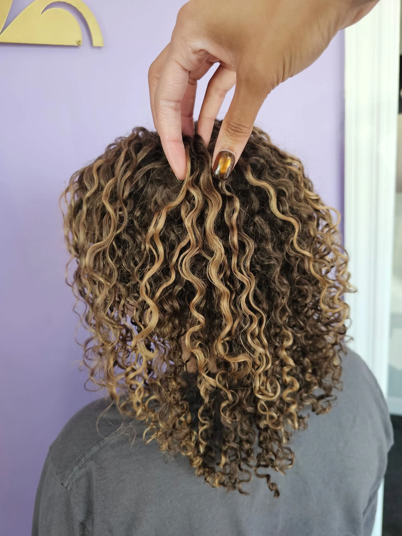 Custom-painted highlights that add soft brightness and dimension while honoring your unique curl pattern.